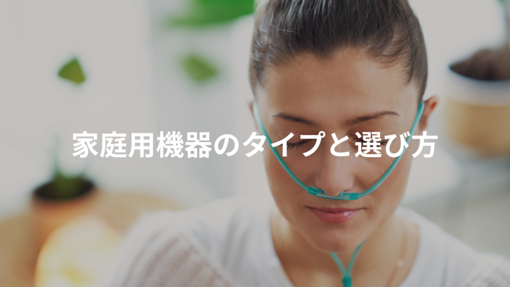 - 投与形態:家庭用は一般に低〜中濃度の持続吸入が基本で、鼻カニューレやマスクでの吸入が中心です。医療現場で行う高濃度・短時間の吸入とは使用法が異なります。